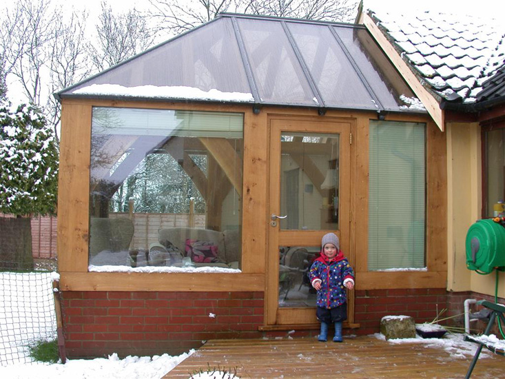 We finally took the plunge and decided to do our own green oak framed conservatory at our new address. It has been a bit of an eye opener in some respects as I have never played the client before! We had a few people let us down and suffered a few delays but in the end we have something to be very proud of.