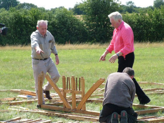 In June 2006 Rick was filmed for the forthcoming BBC series: "How we built Britain - Medieval East Anglia". Rick demonstrates hewing, sawing and joint cutting of timber with David Dimbleby. With Roger and John from Weald & Downland Open Air museum they erect a 1:6 scale replica of a timber framed house.