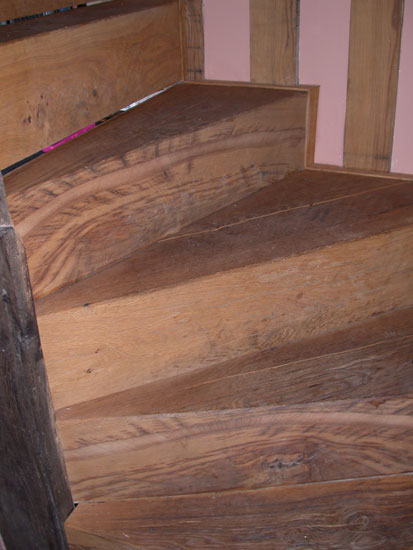 A small link frame allowed better acces to the rear of the house whilst a new solid oak staircase was inserted to allow the family more convenient access to the first floor rooms. Although drawing inspiration from medieval and Tudor staircases it does utilise the existing early stairwell and is thus rather steep!