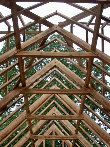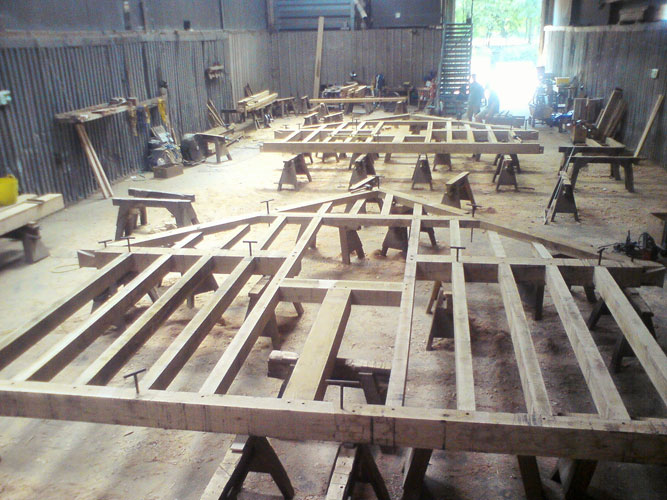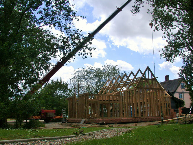 This large frame was built for one of the owners of the Rougham Estate (now sadly deceased) Sir John Agnew, 6th Baronet of The Planche, Suffolk. It was to house some of his vintage vehicle collection including an early omnibus to fit within the central section hence the tall and open design. The first floor section of the wings was to house his library on historic vehicles but since his untimeley death I don’t know how the building is being used.
