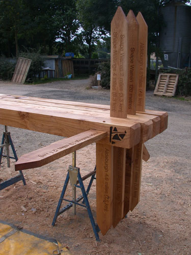 This curious project came to us in 2012 via Suffolk County Council’s rights of way team. The Sailors’ path is a footpath that uses an ancient route once trod by sailors between Snape and Aldeburgh on the Suffolk coast. Both are wonderful places to visit and are rightly popular with tourists so the County Council were keen to ensure that their signage and seating along the much-loved path was of a high quality. We were tasked with producing bollards and finger posts as well as benches from locally sourced timbers. All would be labelled with the distinctive logo of a commercial barge as was used on the local coast and rivers to ferry goods between the towns and villages of the East Anglian coastline.
