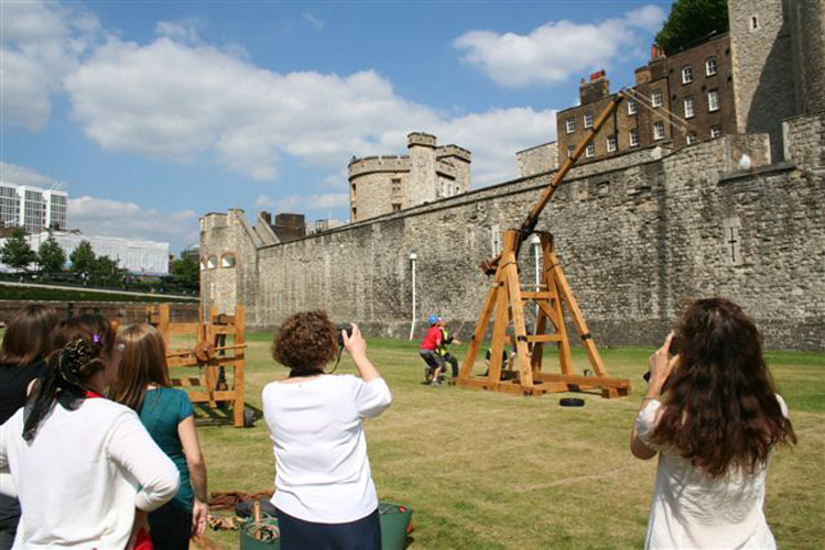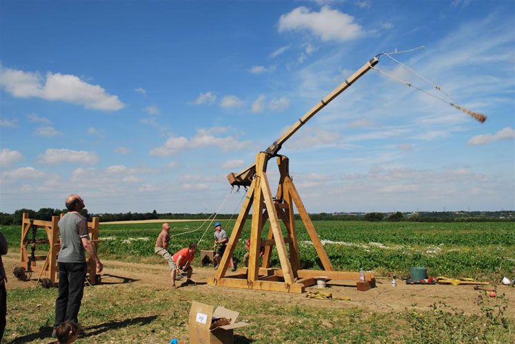 Once completed we had some great fun in one of the fields adjacent to our 'shop where we tested the larger perrier with flint boulders and even before adjustments a four man crew could gain 60 metres. The springald had a couple of hiccups to start with but once completed they were off to site with a tight deadline for assembly; the smaller perrier had to be assembled and positioned on the south wall in less than an hour! Suffice to say all went fine and now they are all on site the larger perrier and the springald are used during the school holidays by visitors to the Tower, for times check the Historic Royal Palaces website.