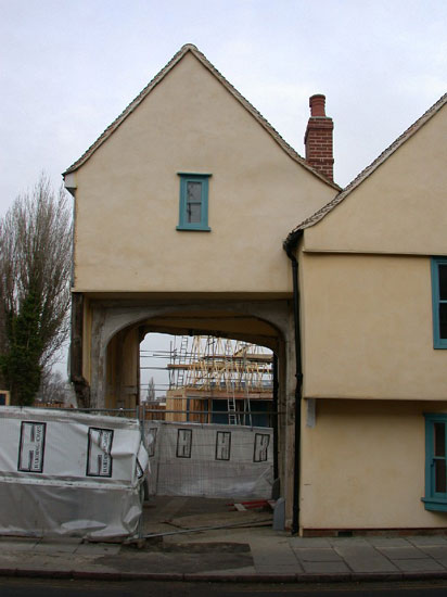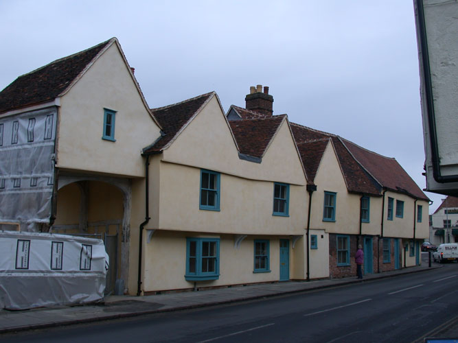 A group of buildings dating from the 14th to the 17th century that were formerly the trading premises Charles Brown and Sons. This range of buildings were converted to three apartments in 2004 and the 15th century pack horse entrance reinstated. When this had been converted to a shop the 8" thick arch braces below the tie beam had been removed; our task was to put them back as well as face repairs to the mouled posts below.