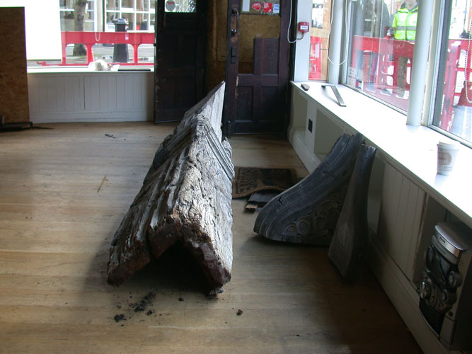 Curson Lodge was built in the late 15th/early 16th Century although it has had many alterations and additions since then. In February 2013 a car crashed into the finely carved corner post that sits on the corner of St. Nicholas Street and Silent Street causing damage to some 20th century repairs as well as almost completely destroying the front entrance doors. Our task was to write a method statement for submission to Ipswich Borough Council and English Heritage so that we could swiftly get the building back together again and make it safe for passing pedestrians and traffic in this busy part of the town. Once given the go ahead we were able to reinstate the repaired post, re-fit the front doors (which had been completely rebuilt by a fantastic local joiner), rebuild the plinth and then make good with limewash.