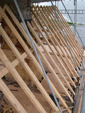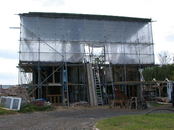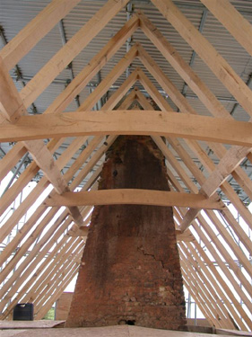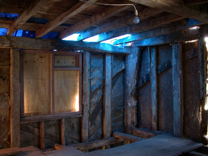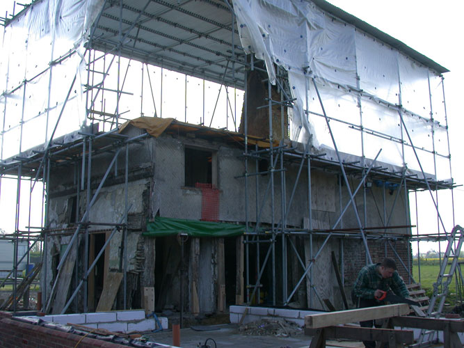This frame from the end of the 16th century/beginning of the 17th century had some decay to its frame and had been unoccupied for over 40 years. In 2005 a fire destroyed the roof so in the summer of 2006 we started our programme of repairs. After three months of hard work we had repaired the decayed and partly missing wall/floor frames and replaced the missing roof. To reconstruct the roof we had photos from before and after the fire as well as a few charred rafter remnants for joinery details and positions. A sad tale but a truly rewarding project for us all.