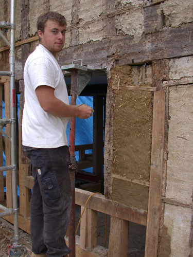 We are always keen to retain as much historic infill as possible and work hard to keep it in place. Sometimes it is in such poor condition that we have to remove it and reconstitute it, occasionally we have to remove sections to facilitate our repair works. We always reinstate it like-for-like and reuse any we have taken out mixed with fresh straw and good Suffolk clay!